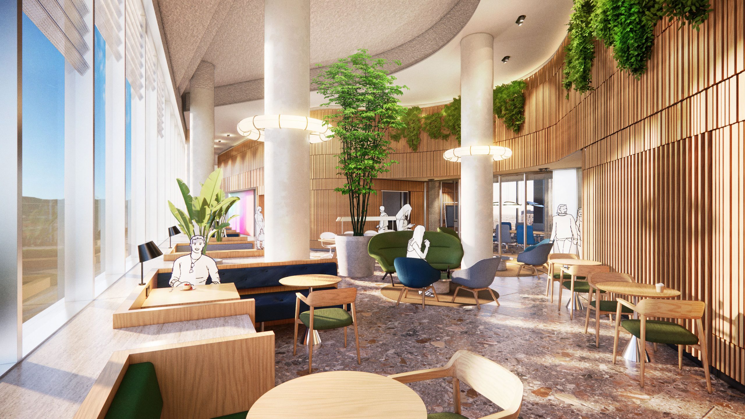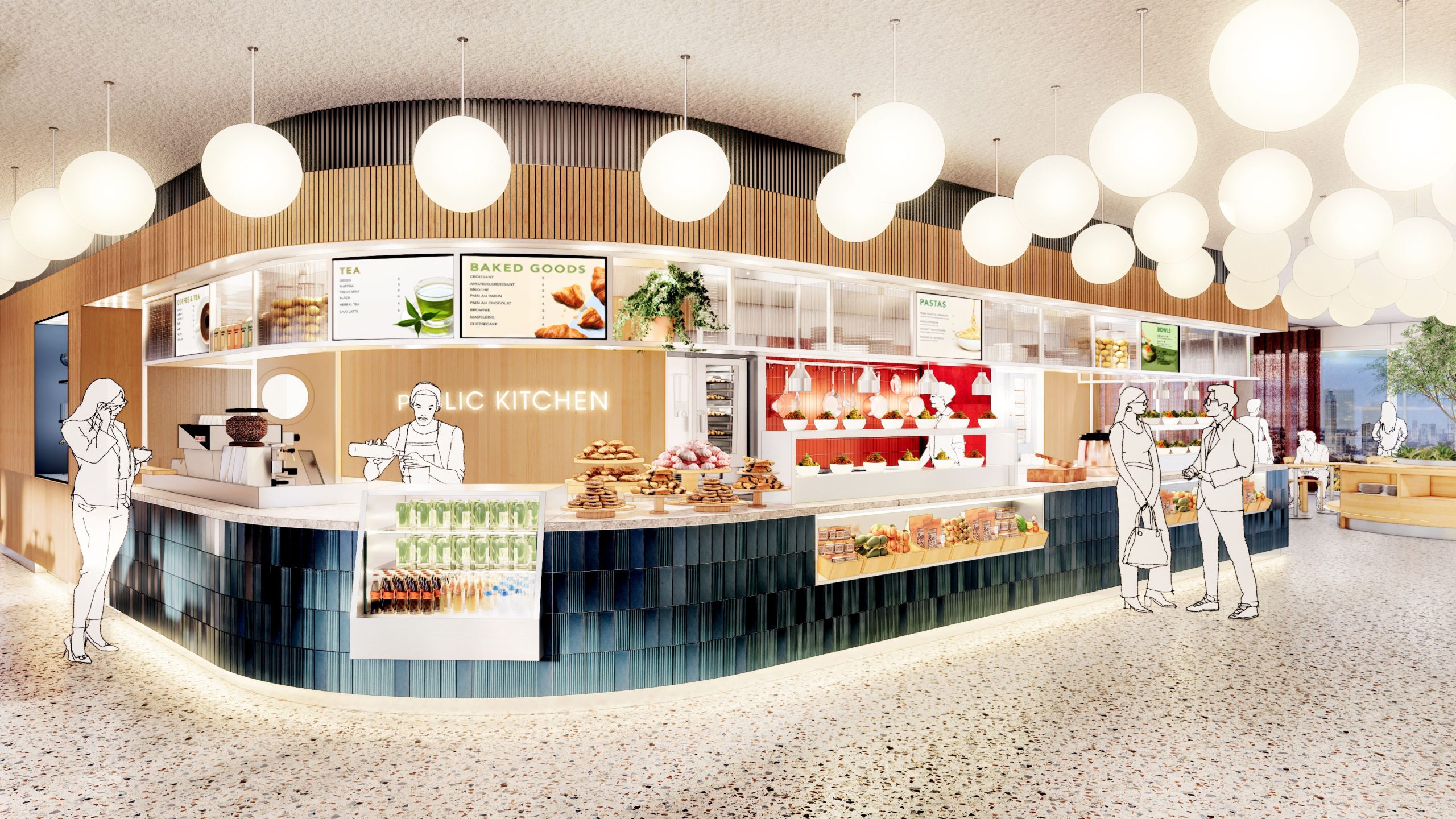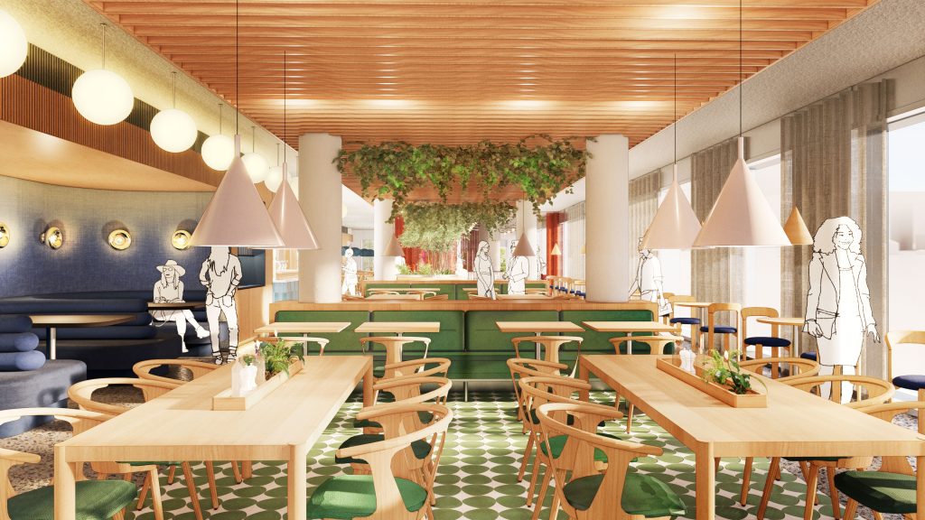 Blue Zone aims to be a building that is accessible and connected to the neighborhood and the surrounding city. Therefore, the ground floor will be filled with functions that are not only relevant to the building's users but also to the local residents. The ambition is to house a traditional bakery with a café in the ground floor, where you can get fresh bread, good coffee, sandwiches, and pastries daily. Additionally, the bakery can supply other F&B outlets in the building with its freshly baked products. Alongside the bakery, we will also invite other local entrepreneurs to run sustainable businesses on the ground floor.