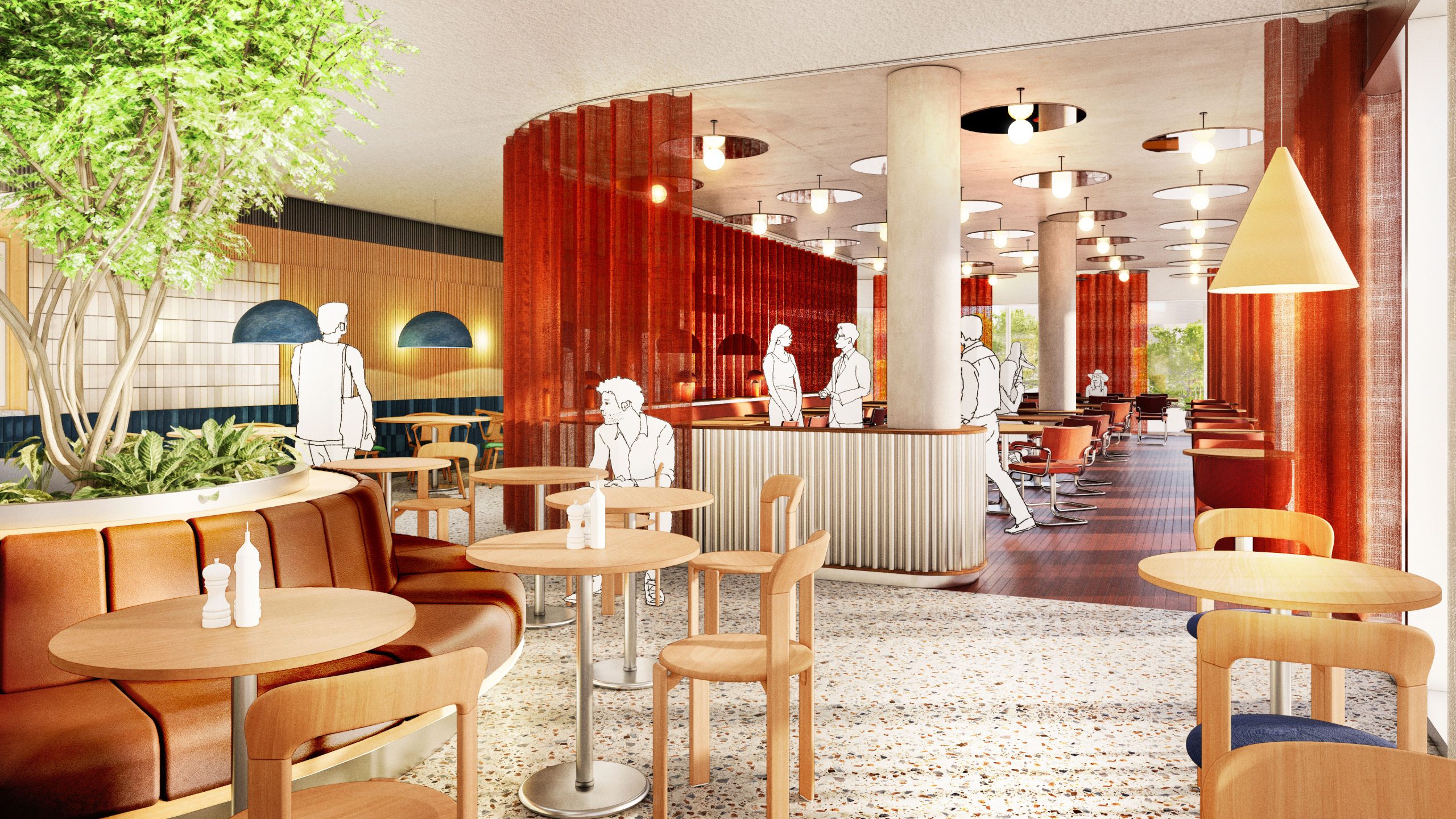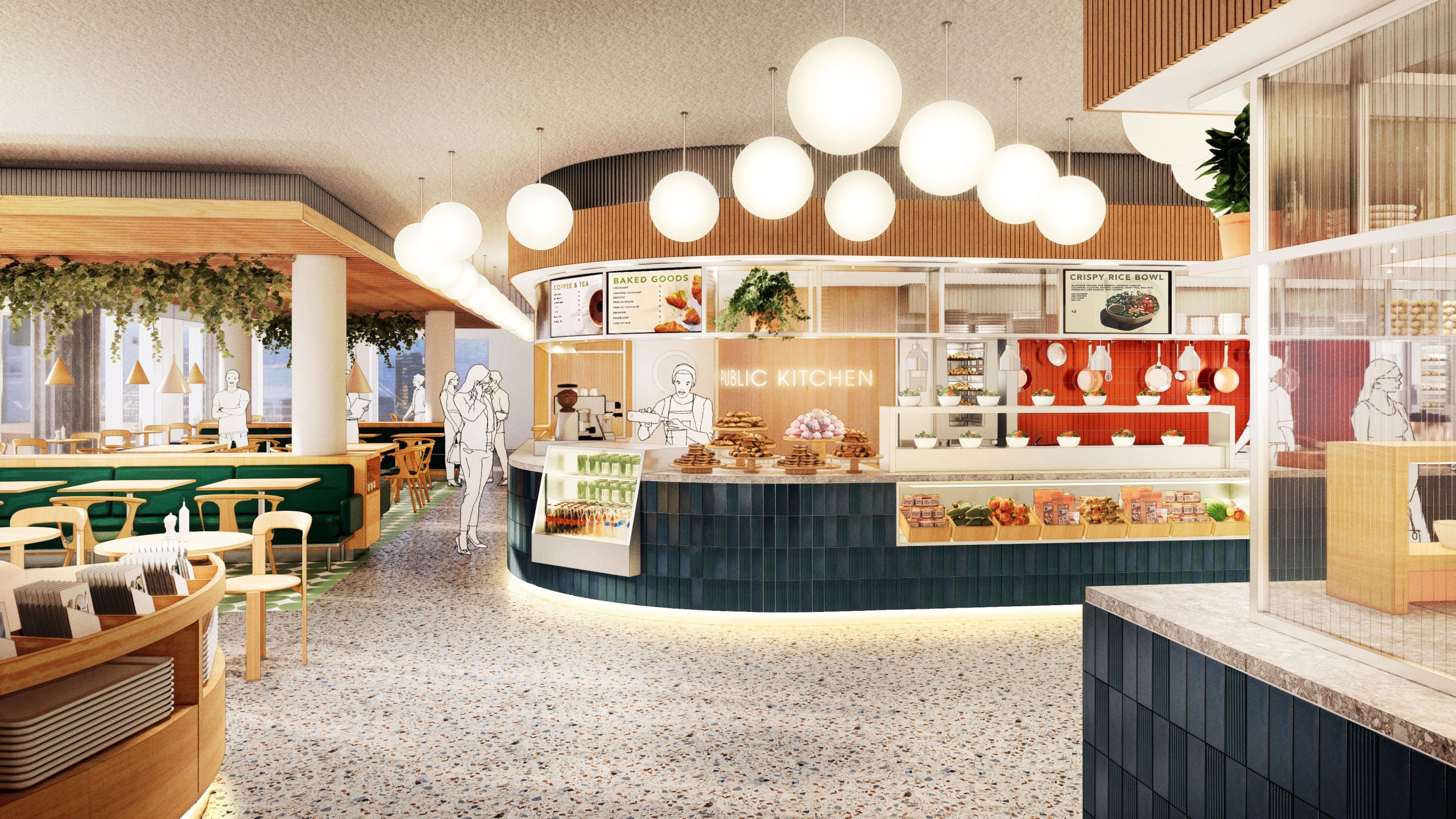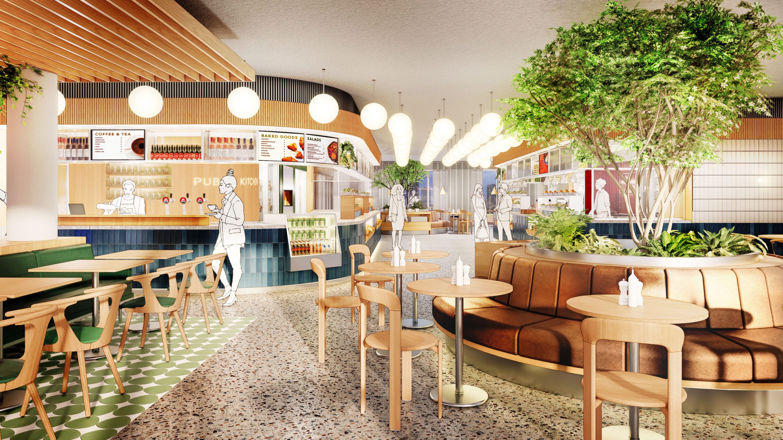 Blue Zone aims to be a building that is accessible and connected to the neighborhood and the surrounding city. Therefore, the ground floor will be filled with functions that are not only relevant to the building's users but also to the local residents. The ambition is to house a traditional bakery with a café in the ground floor, where you can get fresh bread, good coffee, sandwiches, and pastries daily. Additionally, the bakery can supply other F&B outlets in the building with its freshly baked products. Alongside the bakery, we will also invite other local entrepreneurs to run sustainable businesses on the ground floor.