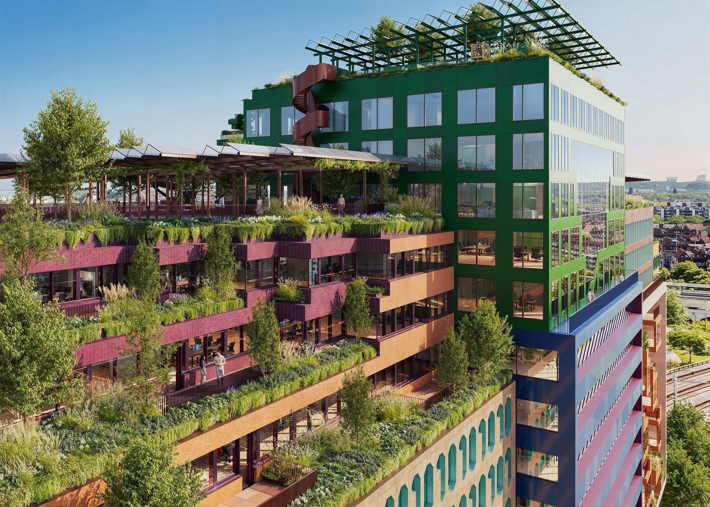 Blue Zone offers the users of the top office floors the unique possibility to create private sun-filled terraces with panoramic views over the city.